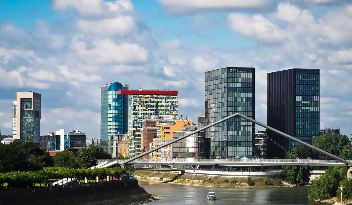 The sky over Düsseldorf adds a special touch to the city's skyline. It's usually covered in clouds, and the sun doesn't often peek out from behind them. On cloudy days, however, it's pleasant to walk around, especially as the city doesn't experience extreme temperatures in either summer or winter.