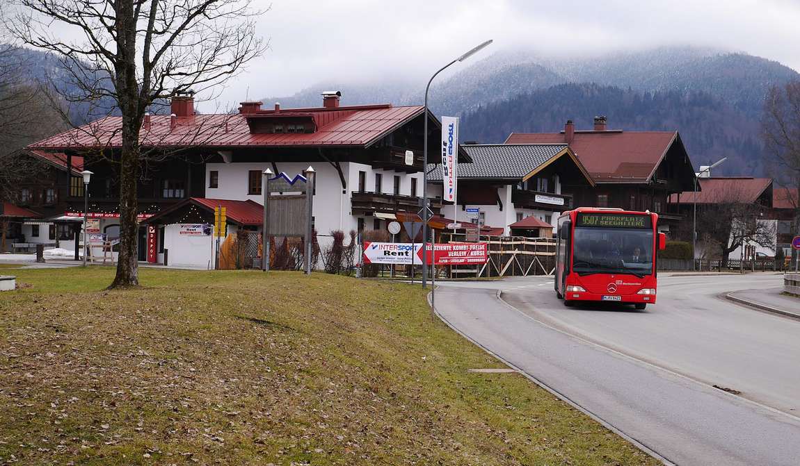 The public transport system in Reit im Winkl is very simple: a ski bus takes skiers to the bottom lift station at Seegätterle, while a town bus connects the resort with the neighbouring villages of Entfelden, Großenbach and Blindau.