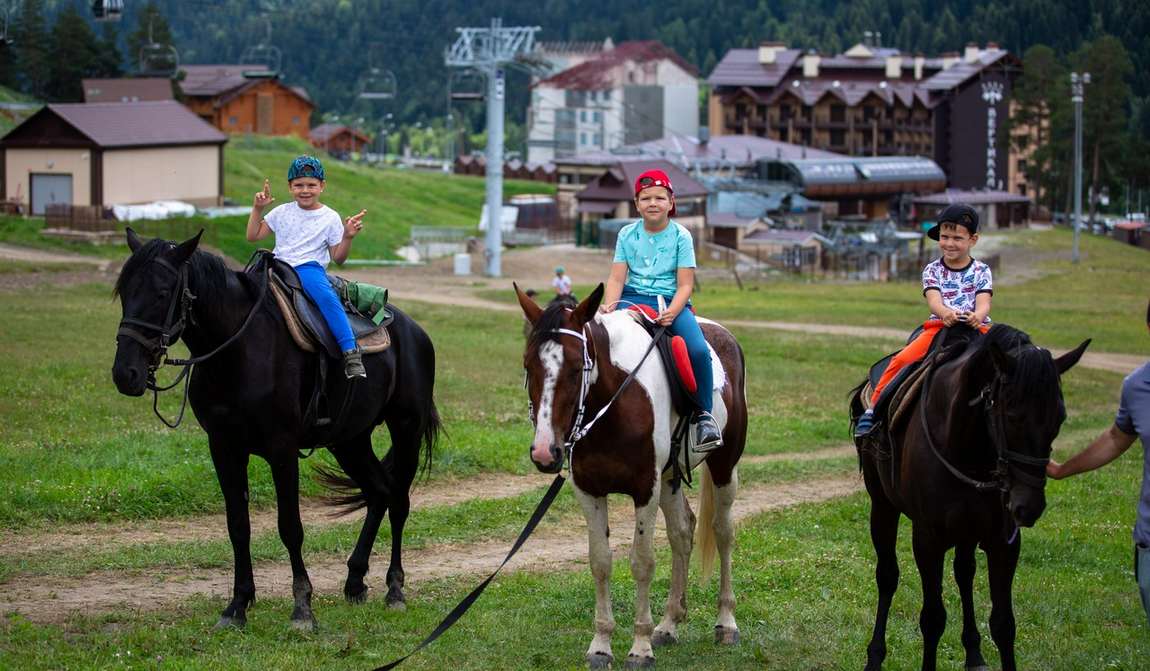 В теплое время года детвора проводит время на игровой площадке. Периодически на курорте устраиваются бесплатные развлечения для детей – конкурсы, фестивали, праздники. Планируется строительство пешеходной зоны между поселками Романтик и Лунная поляна, где можно будет погулять с ребенком, не выдвигаясь в горы.