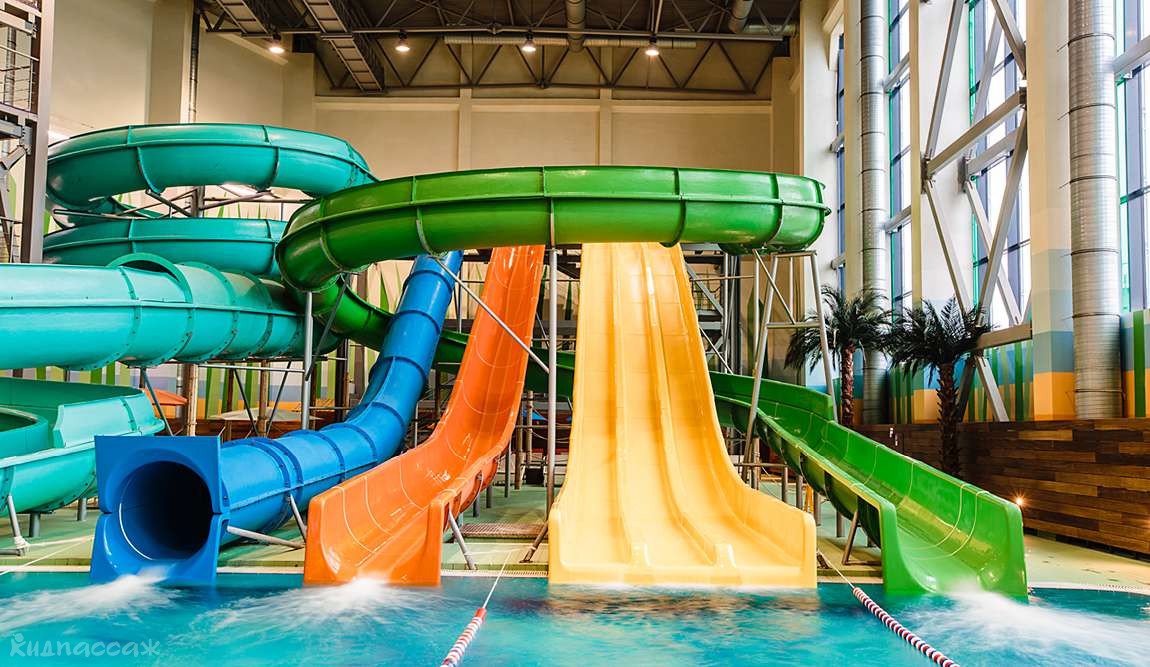 Летом и зимой в крытом аквапарке температура воздуха и воды держится на отметке +30°С, а в волновом бассейне наблюдается легкий шторм. Малышовый бассейн в аквапарке очень скромный, а вот горки для подростков и взрослых впечатляют.